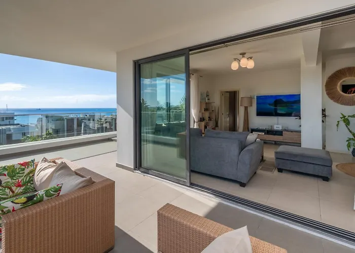 Este apartamento de 200 m², Penthouse Vue Mer - Mont Choisy Grand Baie, está situado a unos 10 minutos en coche de los Submarinos Blue Safari, y a tan solo 1 km del Evaco Beach Club "La Plage". Los huéspedes pueden relajarse y contemplar las vistas al mar desde la terraza de este apartamento.